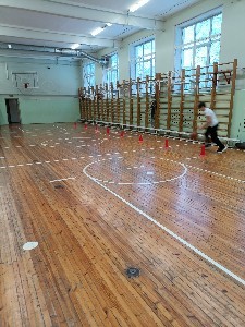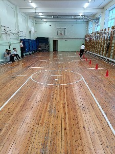 2.Баскетбол: комбинация с ведением и бросками мяча на время